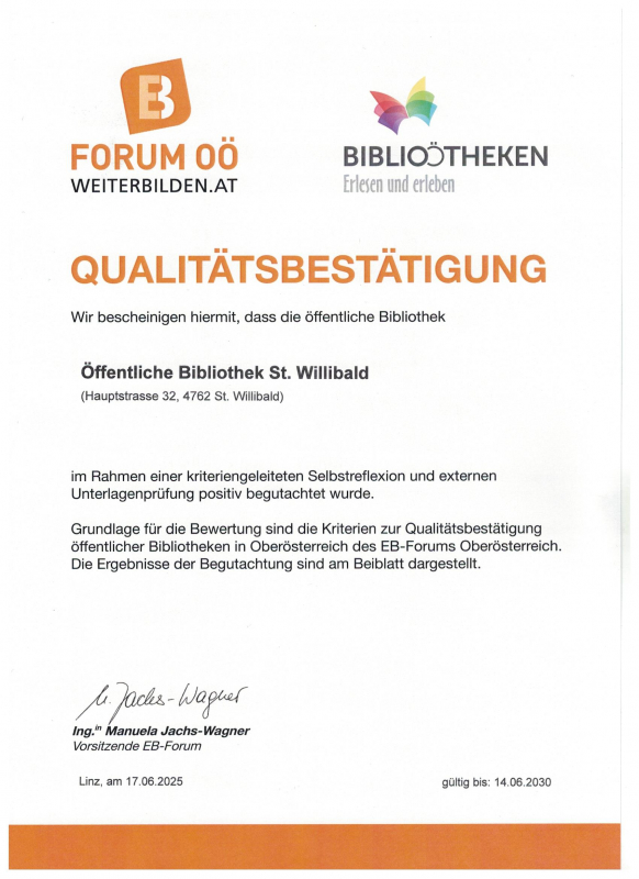 Unser Schwerpunkt ist die Kinder- und Jugendliteratur: Dabei arbeiten wir eng mit der Schulbibliothek St. Willibald zusammen und bieten somit "Service unter einem gemeinsamen Dach". Über 50 % aller vorhandenen Medien stehen für die Kleinsten zur Verfügung. Im "Willibalder Bücherwald" soll die Lust am Lesen, Schmökern, Schauen, Staunen & Lernen schon bei den ganz Kleinen geweckt werden. Wie das geht? Mit einem reichhaltigen Bilderbuchangebot, tollen Spielen, CDs und DVDs, einer kindgerechten Wohlfühlatmosphäre und vielen Extras und Schmankerln nur für die Kids.